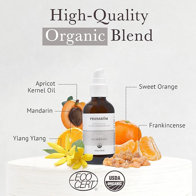 Pranarom - Pure Facial Cleansing Oil (4oz / 120ml) - 100% Pure & Natural Essential Oil Facial Cleanse for Makeup & Impurity Removal