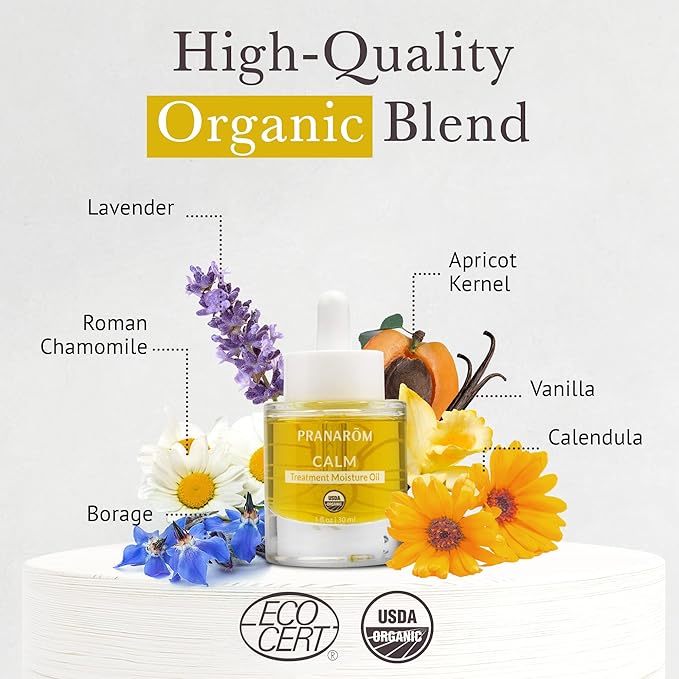 Pranarom - Calm Treatment Moisture Oil (1oz / 30ml) - 100% Pure & Natural Essential Oil Moisturizing Oil for Sensitive Skin Treatment & Nourishment