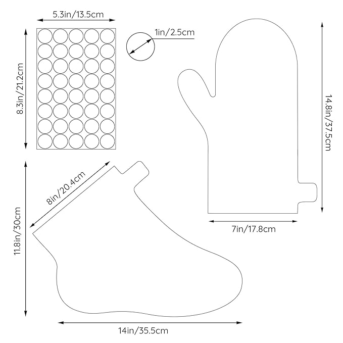 - 【Liners Size--Extra Large】Mitt Size: 14.8" x 7" (37.5 x 17.8 cm); Foot Cover--14" x 11.8" x 8" (35.5 x 30 x 20.4 cm); Totally 200 counts of liners, included 100 counts of plastic gloves, 100 counts of foot covers, and 200 of stickers.