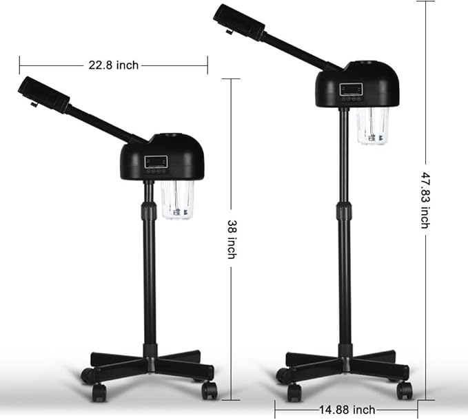 - Adjustable Height & 360° Rotatable Nozzle: The adjustable height(38"-47.83") and 360° rotating nozzle allows you to complete your facial spa at multiple angles and heights conveniently. Place the sponge in the aromatherapy cartridge at the nozzle, drop in the aromatherapy oil and enjoy your aromatherapy spa.