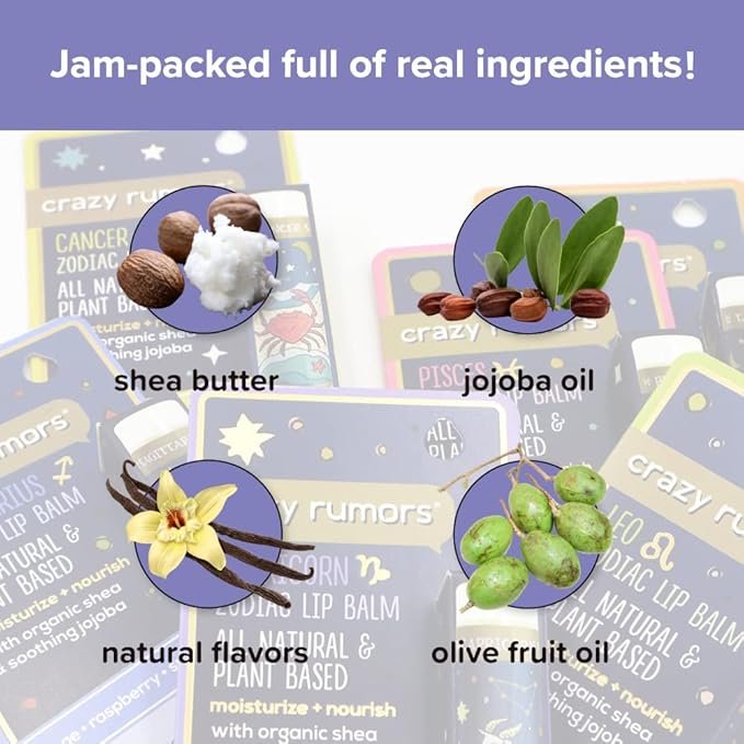 Crazy Rumors Pisces Zodiac All Natural, Plant Based Lip Balm to Moisturize and Nourish your Lips - Water Blend (Tropical Mango, Citrus Lemon, and Fragrant Berry)