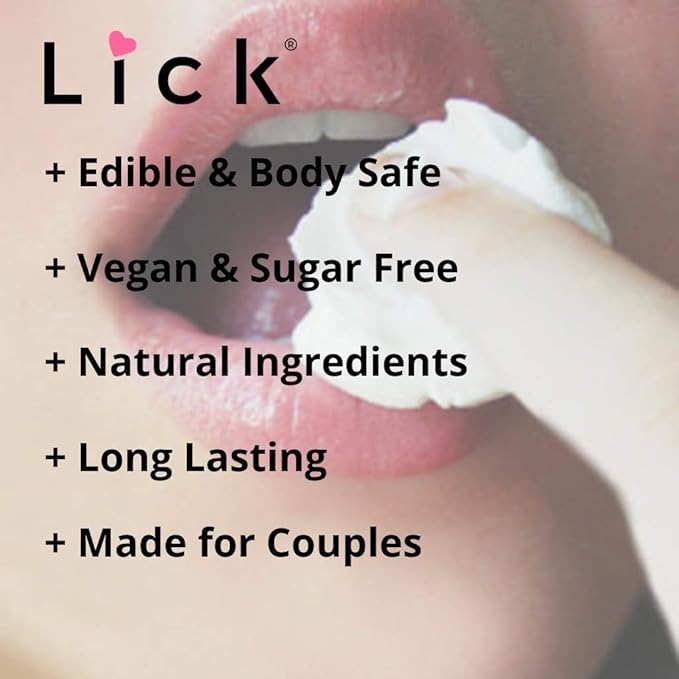 - MADE IN THE USA in facilities that follow rigorous quality controls, LICK Edible Body Oil for adults is sugar-free, non-sticky and bottled in a travel-friendly bottle with leak-resistant disc-top cap.