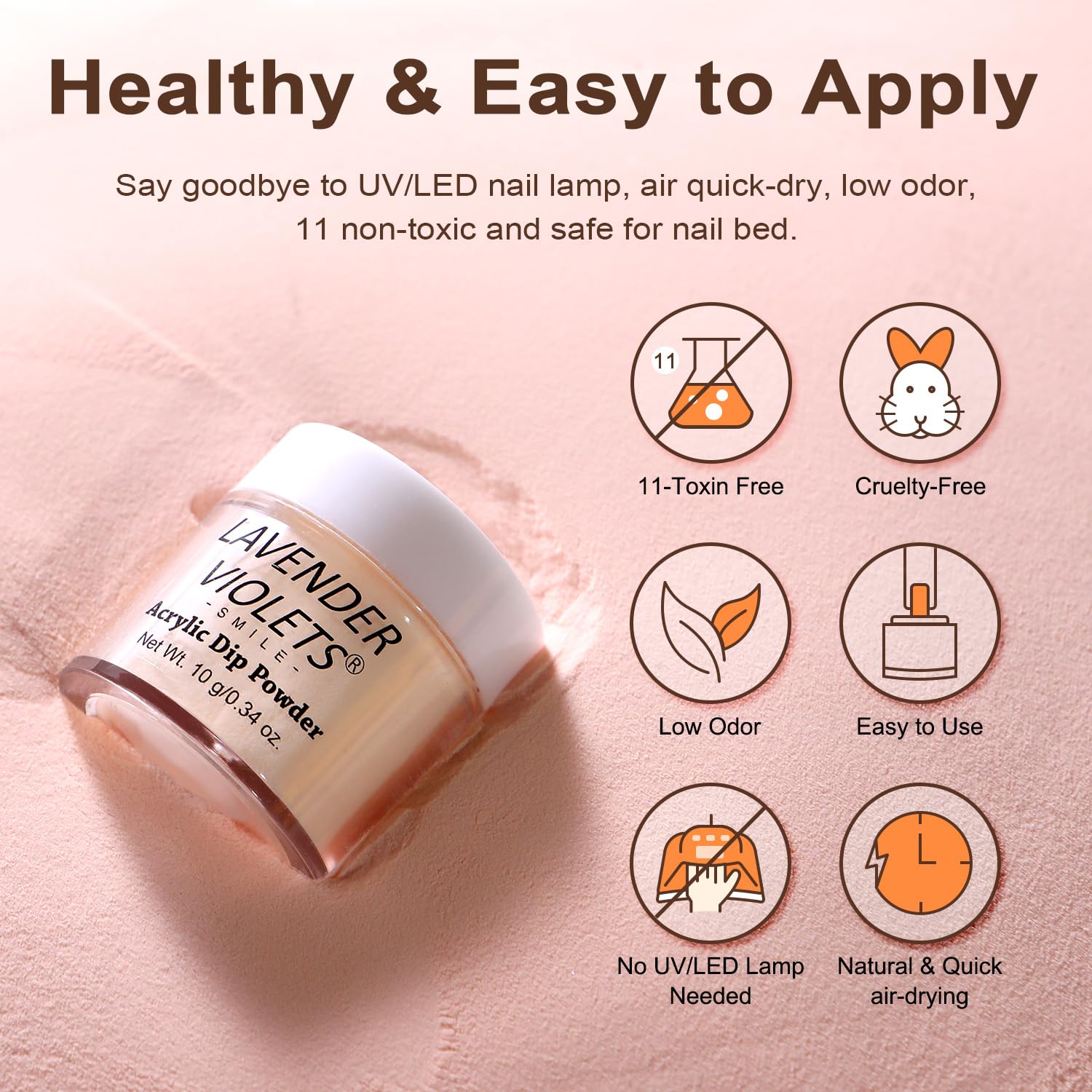 - Get a brilliant shiny nail finish with Lavender Violets dip powder nail kit, it includes 36 jar of glitter and solid rainbow colors acrylic dipping powder (0.34oz/each jar), perfect for all seasons dip manicure looks and pastel nail colors. 【Reminder】The Dip Powder Gel Liquid Set is Not included.