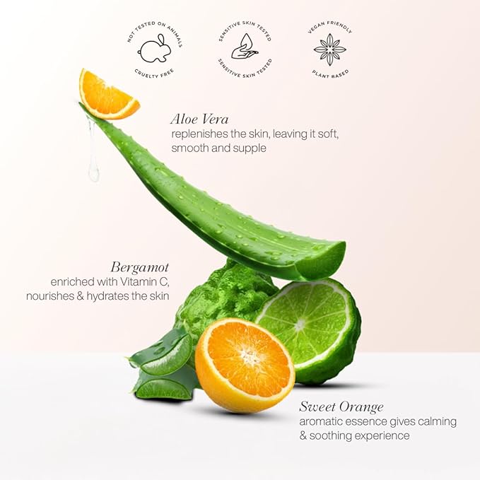 - SHEA BUTTER HAND AND BODY LOTION. This cruelty-free lotion combines shea butter and bergamot essential oil for nourishing and hydrating your skin. The sweet orange aromatic essence gives a calming and soothing experience.