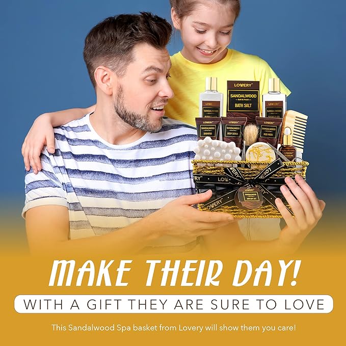 Mens Gift Set, 14Pc Sandalwood Bath Gift Set, Personal Self Care Kit, Gifts from Son, Relaxing Man Gift Basket for Dad, Boyfriend, Husband, Birthday Basket, Grooming & Skin Care for Men