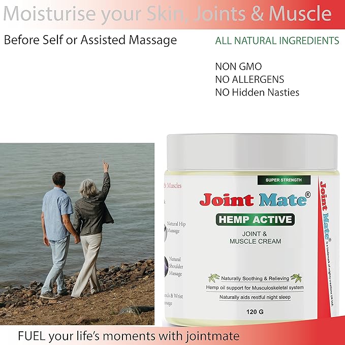 - Disclaimer: Joint Mate ORIGINAL Hemp Cream is designed to help lubricate Skin, Joints & Muscles before a self-massage. We only use NATURAL ingredients. ALWAYS Test on a small part of skin to ensure you do not have any allergies to any of the ingredients used. For EXTERNAL USE ONLY. Do Not Use on Open Wounds.