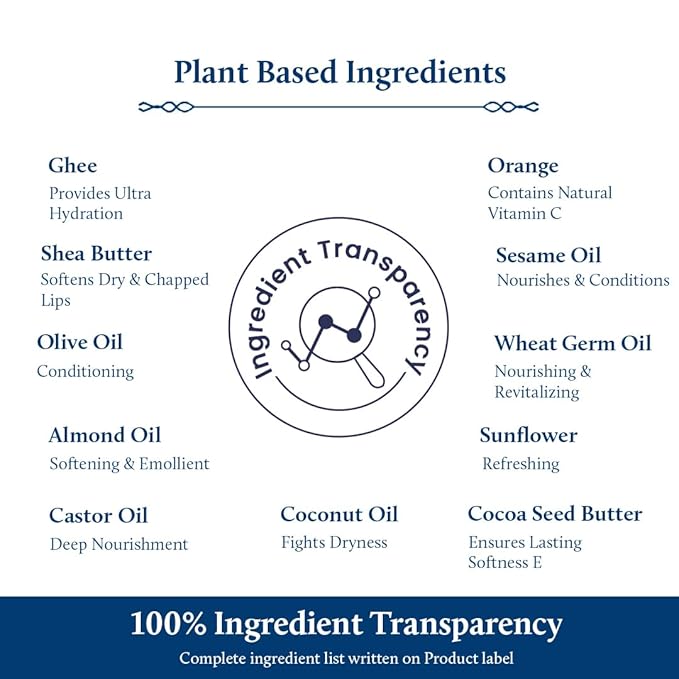 - Product Benefits : Enriched with Organic Ghee & Shea Butter, hence crafted to heal, prevent chapped & dry lips.