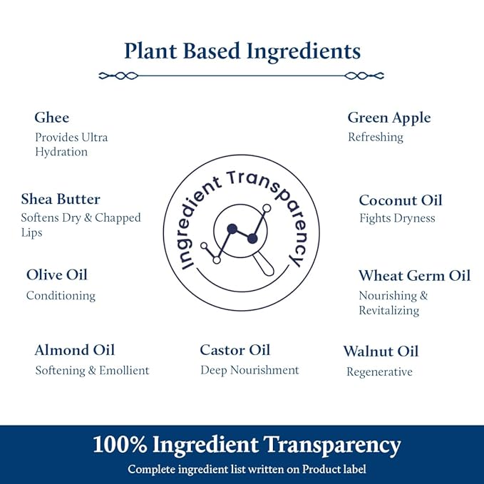- Product Benefits : Enriched with Organic Ghee & Shea Butter, hence crafted to heal, prevent chapped & dry lips