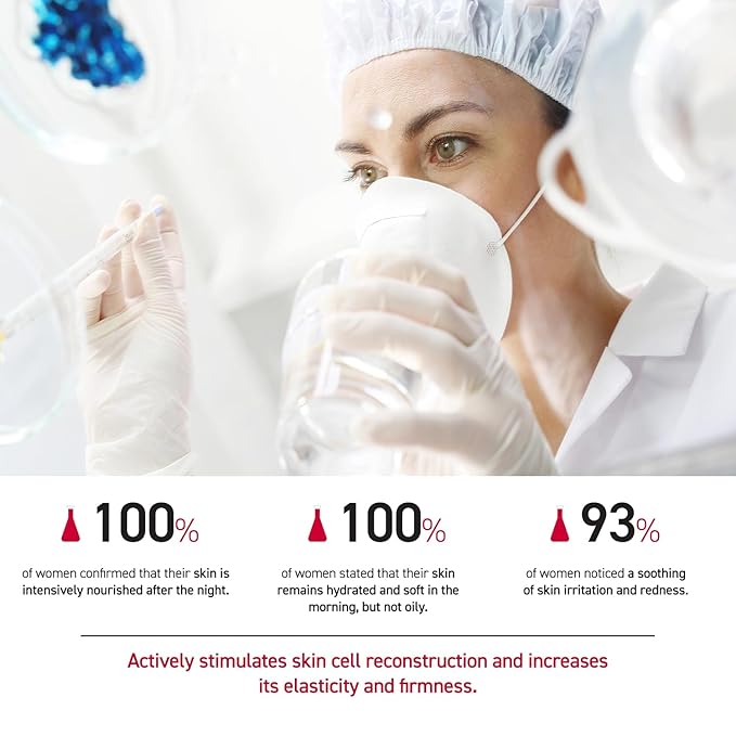 - Regeneration and Reconstruction: This night cream actively stimulates skin regeneration & reconstruction, particularly when the skin's natural healing processes are most active. Improve skin texture.