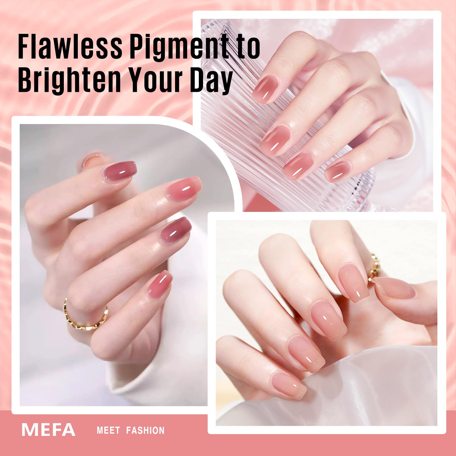 MEFA Jelly Gel Nail Polish Set, 12 Colors Nude Pink Milky White Sheer Nail Polish Neutral Transparent Gel Nail Soak Off DIY Nail Art Home Salon Manicure Gifts for Girls