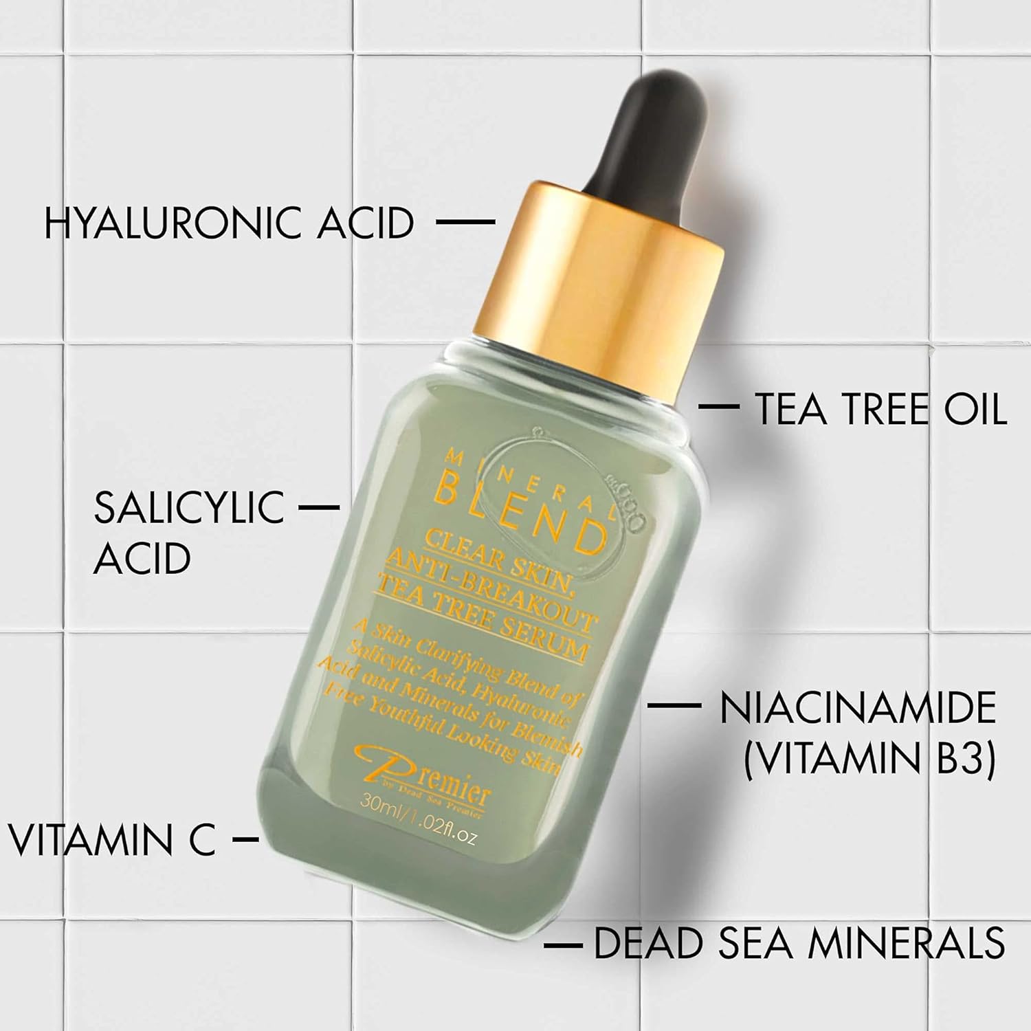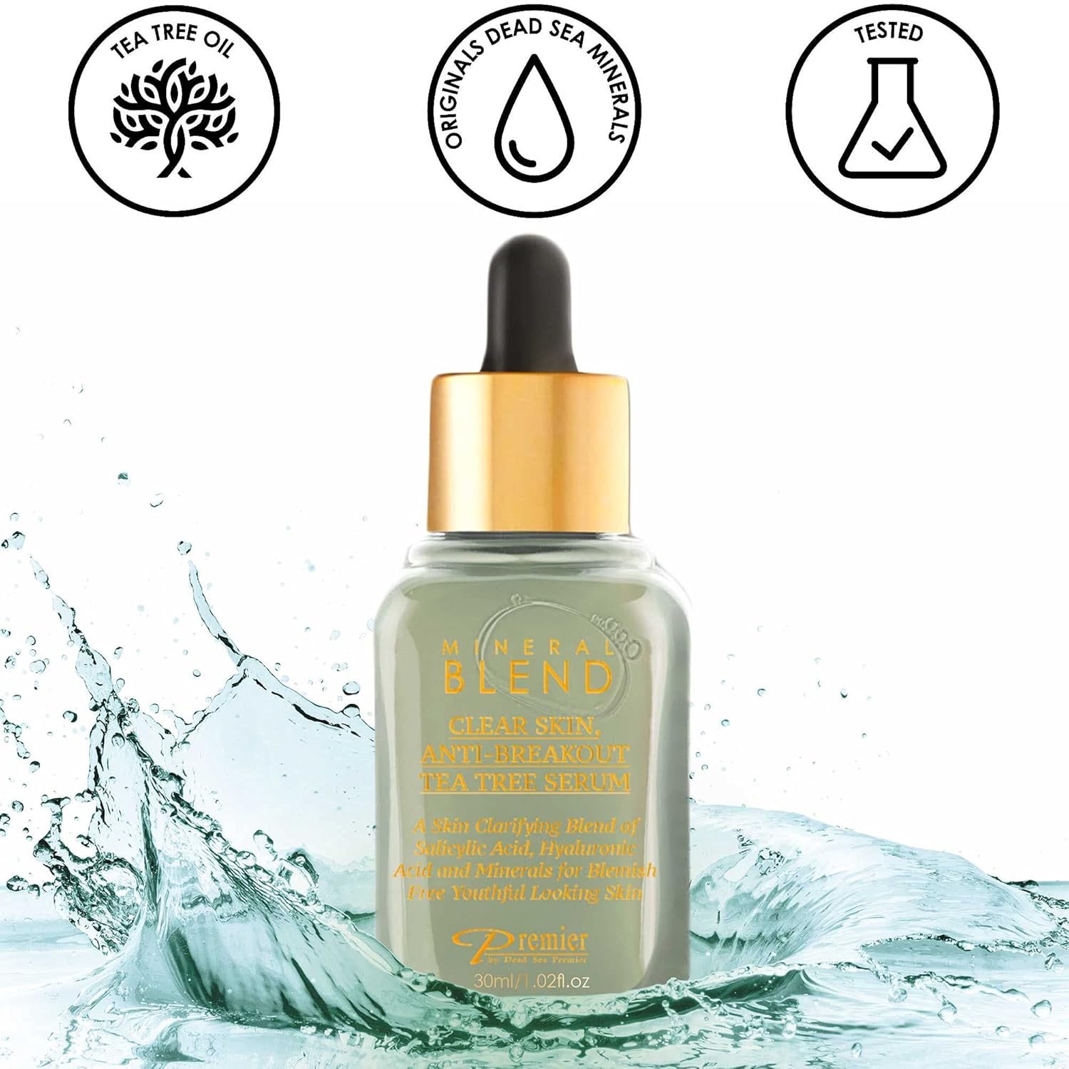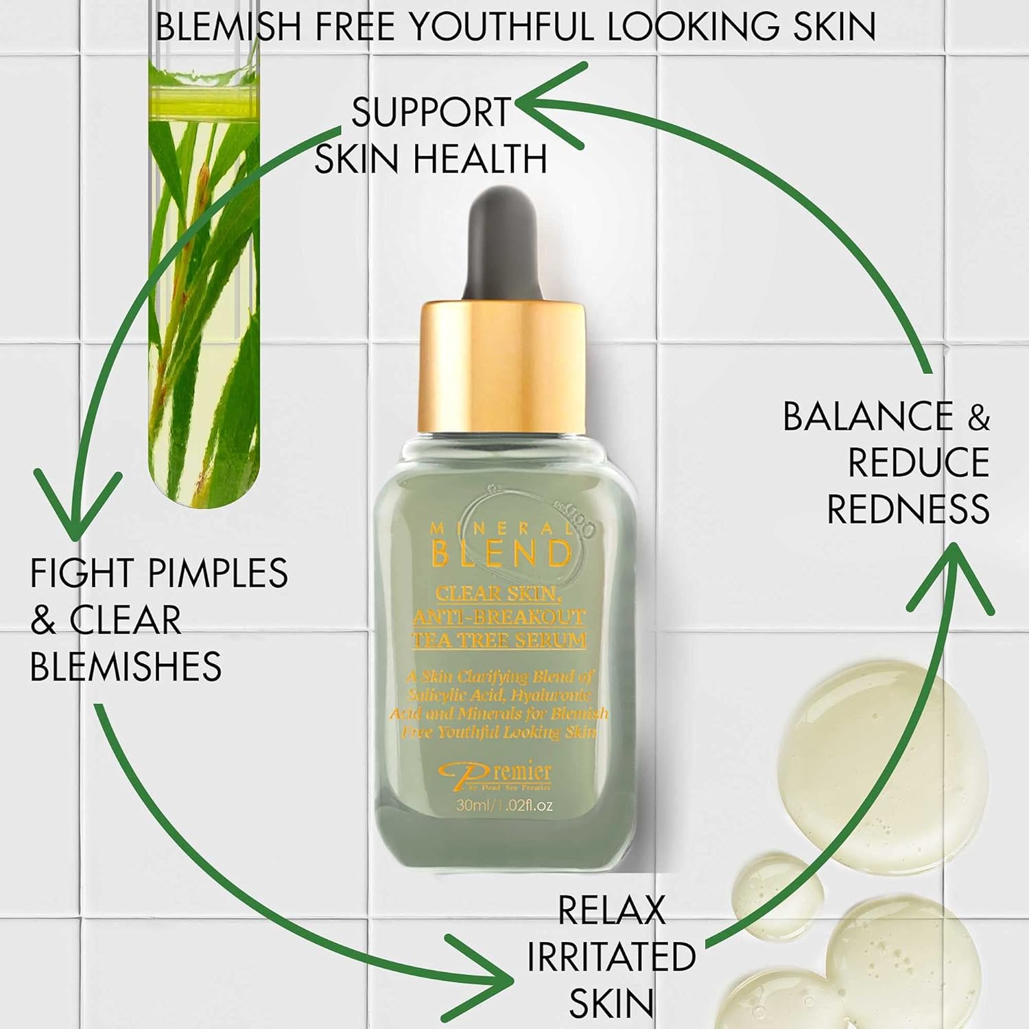 Clear skin, Anti-breakout Tea Tree serum for face and acne with Vitamin C,Salicylic Acid, Hyaluronic Acid and Minerals for blemish free youthful looking skin 1.02 Fl.Oz