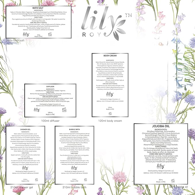 - ESSENTIAL OILS: Lily Roy's Bath Sets contain premium quality, sulfate-free, paraben-free, and cruelty-free Shower Essentials rich in Vitamin E, Shea Butter, and Essential Oil to help moisturize and soothe the skin
