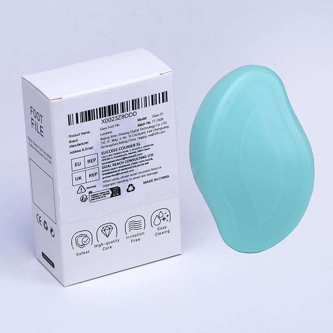 Glass Foot File Callus Dead Remover Heel Scraper and Shower Scrubber - Safely and painlessly removes calluses and Dry Skin from Heels (Blue)