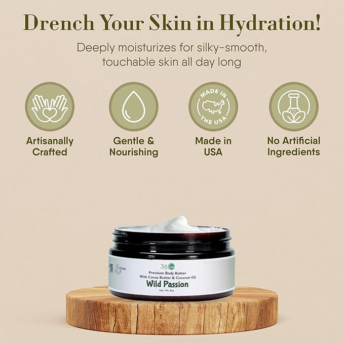 - Natural Ingredients: Formulated with a blend of plant-based oils, this wild passion body butter for women and men is free from harsh chemicals, parabens, and synthetic additives and delivers essential nutrients that promote healthy, glowing skin.