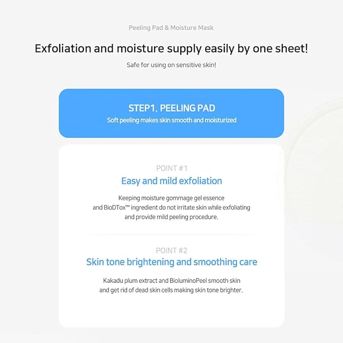 - TWO-STEP ROUTINE: This kit includes both exfoliating face pads and a hydrating moisture mask pads, providing a complete skincare routine. Use the pads to remove dead skin cells and impurities, then follow with the mask to infuse intense hydration for a radiant, glass-skin finish.