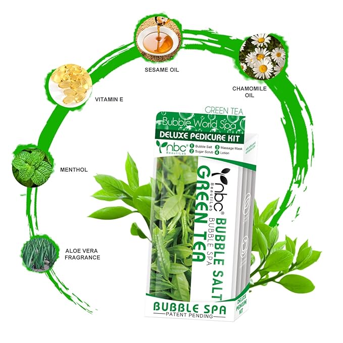 Pedicure Kit Foot Soak Set: Bubble Salt, Sugar Scrub, Massage Mask, Massage Lotion in a Box, 4 Step Foot Spa Kit for Dry Feet, Calluses and Tired Feet (1 Set Green Tea)