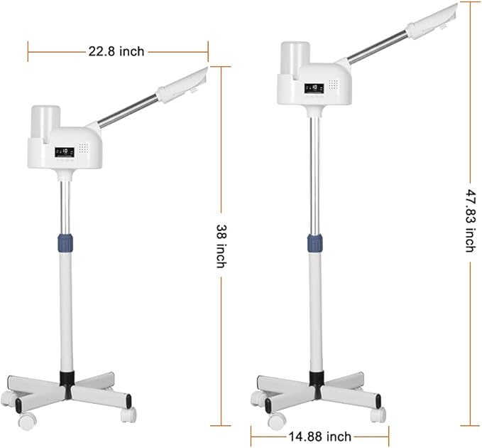 Upgrade Professional LCD Facial Steamer with Hot Mist, Esthetician Steamer for Salon Spa & Home, Stand Facial Steamer On Wheels, 33.8oz Large Upper Inlet Cup & 50s Fast Heating