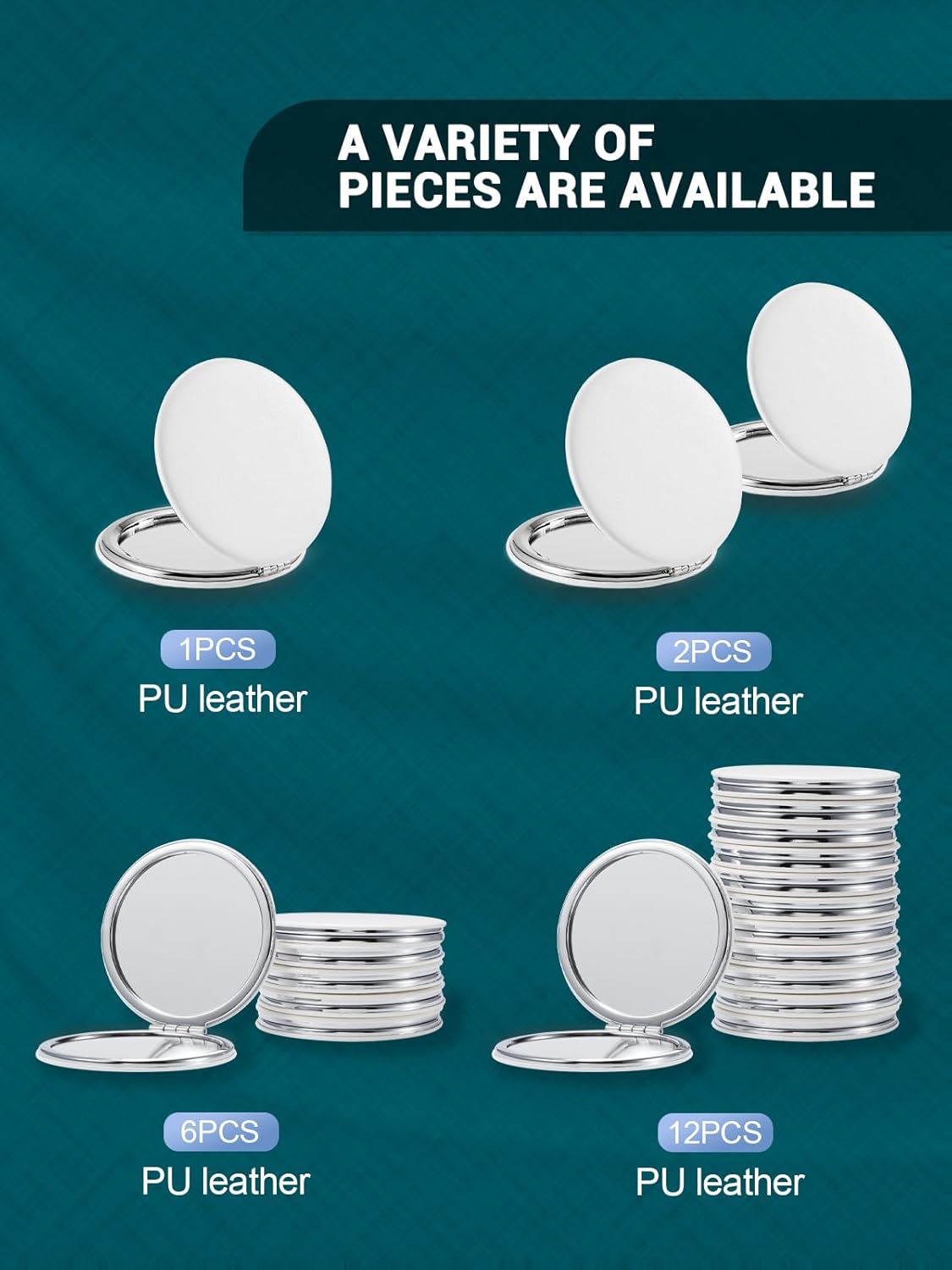 Compact Mirror Bulk, Set of 12 Round Double-Sided 1X/3X Magnification PU Leather (White, 2.8")