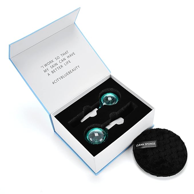 Ice Globes for Facials- Freezer Free Face Rollers with Essence for Daily Beauty Routines, Skin Massagers Globes Durable Quartz Glass for Reduce Puffiness Skin Cooling (Update Green)