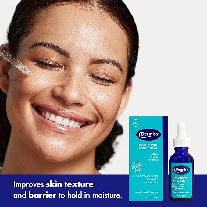 Dermisa Hyaluronic Acid Face Serum 1% Pure Hyaluronic Acid, Vitamin B5, Beta-Glucan | Intense Moisturizer For All Skin Types | Paraben & Fragrance-Free