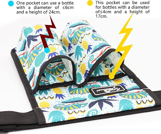- 3、Design: * There are 5 pockets in the bag design. There are two large pockets and two small pockets on the front, which can be used for bottles of different capacities. The large pockets can be used for bottles with a diameter of ≤2.36inch 9.45inch; in addition, two small pockets. The pocket can hold bottles with a diameter ≤ 1.57 inches and a height of 6.69 inches;