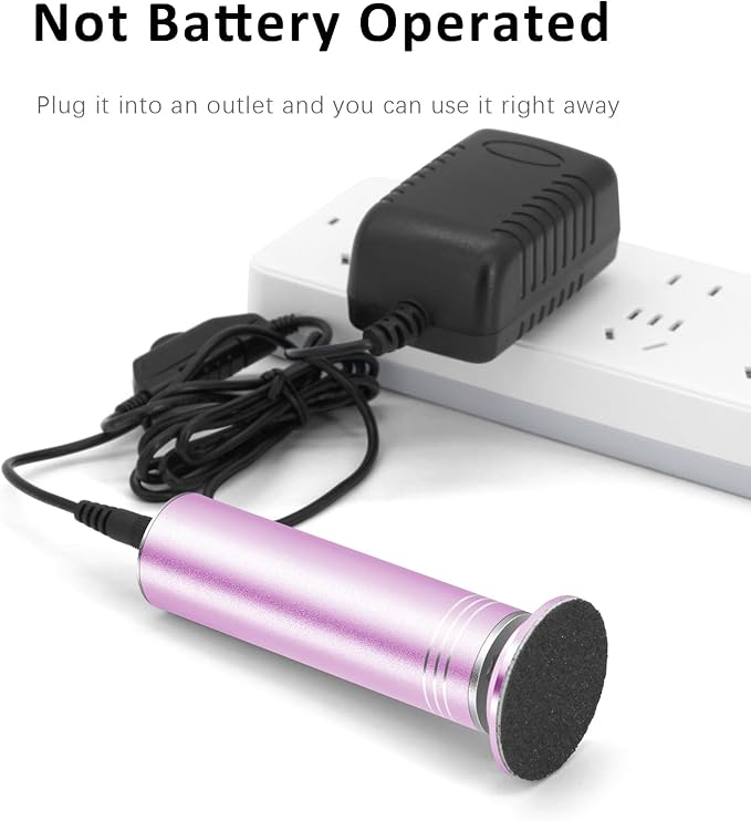 - Not Battery Powered: you don't have to worry about low battery anymore! When you want to use it, just plug it into the outlet, turn the switch on, set the speed, and you can use this electric callus remover immediately.