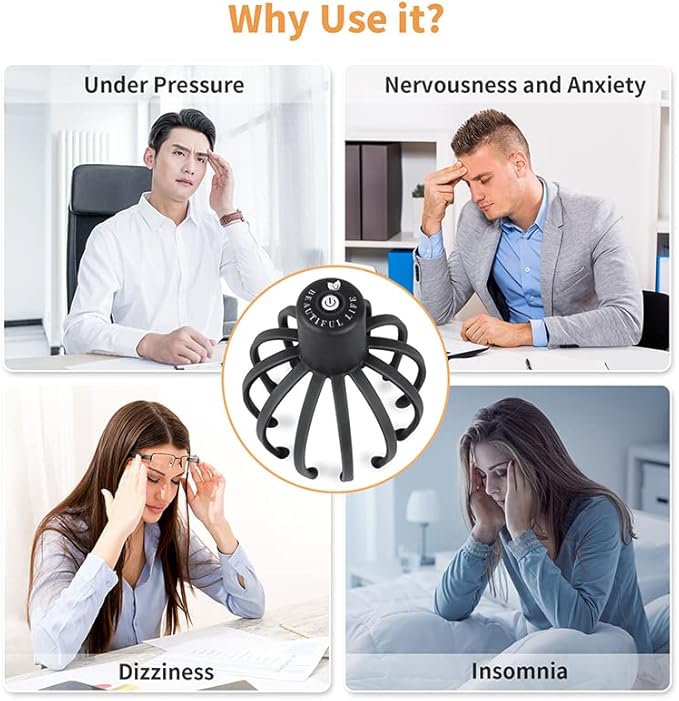 - FULLY RELAXING: Experience the ultimate relaxation with our cordless portable head massager. Let the 12 prongs gently massage your scalp, providing stress relief and promoting better sleep. The soft rubber beads and prongs provide a soothing massage that will leave you feeling refreshed.