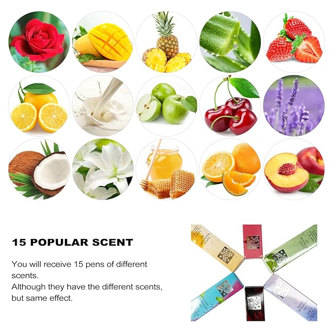 - Different Fresh Scent Nail Oil Cuticle Pens : Total 15 kinds of fruital & floral aromas in this nail care set, include Rose, Mango, Pineapple, Aloe, Strawberry, Lemon, Milk, Apple, Cherry, Lavender, Coconut, Lily, Honey, Orange, Peach. With these natural breath, cuticle strengthener essential oil will allow people to relax and pleasant while during manicure. (A free nail file.)
