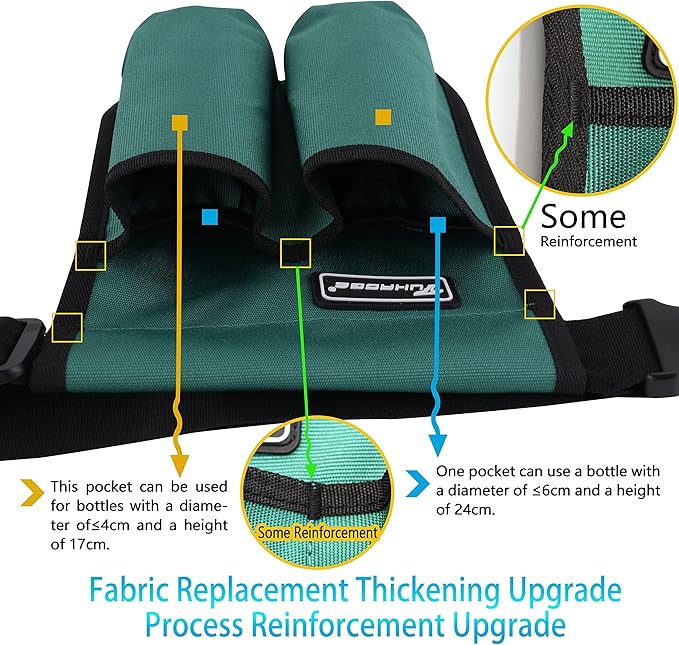 - 3、Design: * The design of the bag has a total of 5 pockets, the front design has two large pockets and two small pockets can be used for different capacity bottle, the large pocket can be used for the diameter ≤2.36inch 9.45inch bottle; In addition, the two small pockets can be used for bottles with diameter ≤1.57inch and height of 6.72inch;