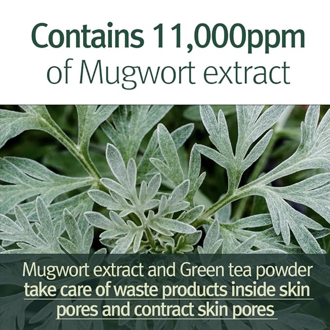 - 🌿 INSTANT CLEAR & SMOOTHER SKIN – 11,000ppm of Mugwort Extract contained in the product cleanses every skin pores to completely remove old waste products, making refreshed and smoother skin. Mung Bean extract purifies the skin and gently cleanses every skin pores clean and fresh