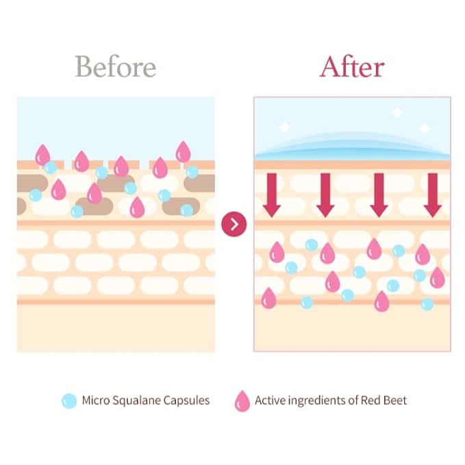 - 🌟 DEEP NOURISHMENT WITH MICRO SQUALENE CAPSULES: Micro Squalane Capsules in this ampoule nourish deep inside the skin. The active ingredients of red beet and skin-friendly plant-derived Micro Squalane Capsules penetrate deeply, providing radiance and nourishment. The waterdrop texture with Micro Squalane Capsules leaves a refreshing finish without stickiness.
