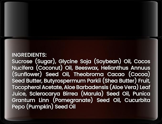 - NOURISHING INGREDIENTS – The natural ingredients contained in this scrub such as Coconut Oil, Sunflower Oil, Cocoa Butter, and Shea Butter are all known for their nourishing properties.