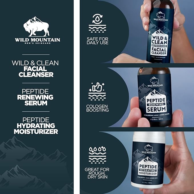 - MEN’S SKINCARE KIT: Get healthier, smoother, and clearer skin with this professionally curated kit. Includes an effective peptide serum, a quick and easy facial cleanser for men ,and a peptide moisturizer with a non-greasy feel.