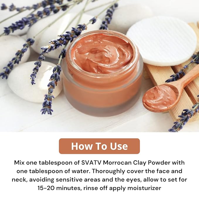 - PURE CLAY POWDER FOR FACIAL CLEANSING :: SVATV Red Moroccan Clay Is A Natural Clay Powder That Is Highly Absorbent And Mixes Easily With Water And Other Moisturizing Products. It Serves As An Excellent Facial Cleanser And Purifying Mask.