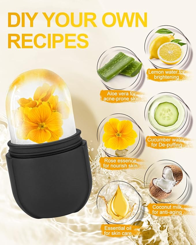 - 🍒Creative skin care match - Our face roller ice mold can be customized the recipe creatively according to your skin's needs; lemonade for whitening,green tea for anti-inflammatory, cucumber water for de-puffing and anti-aging effects of coconut milk, aloe vera is suitable for acne-prone skin and sunburn, rose water to tighten pores, and can also be used with essential oils.