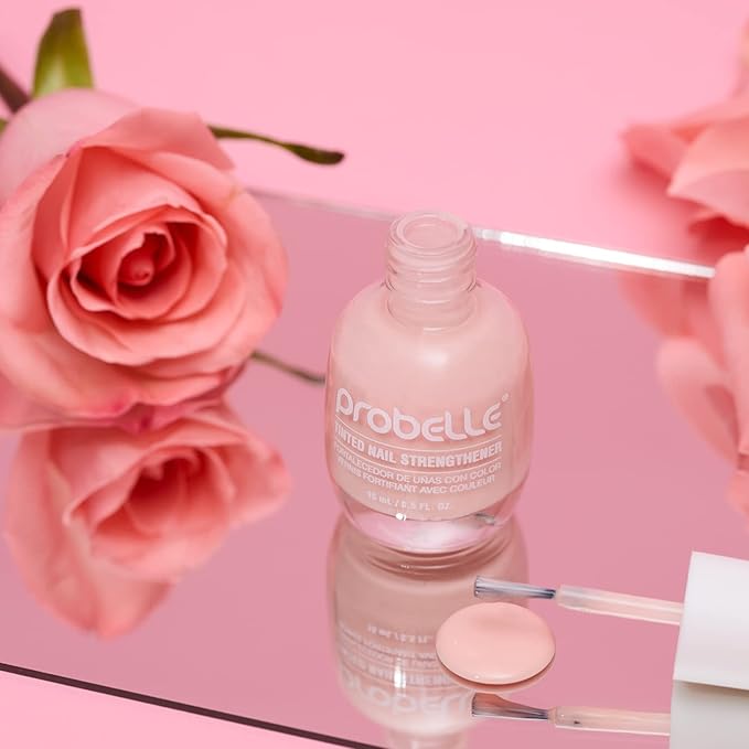 Probelle Tinted Nail Strengthener, Colored Nail Strengthening Treatment, Nail Growth and Repair, Stops Peeling, Splits, Chips, Cracks, and Strengthens Nails (0.5 Fl Oz (Pack of 1), Petal Pink)