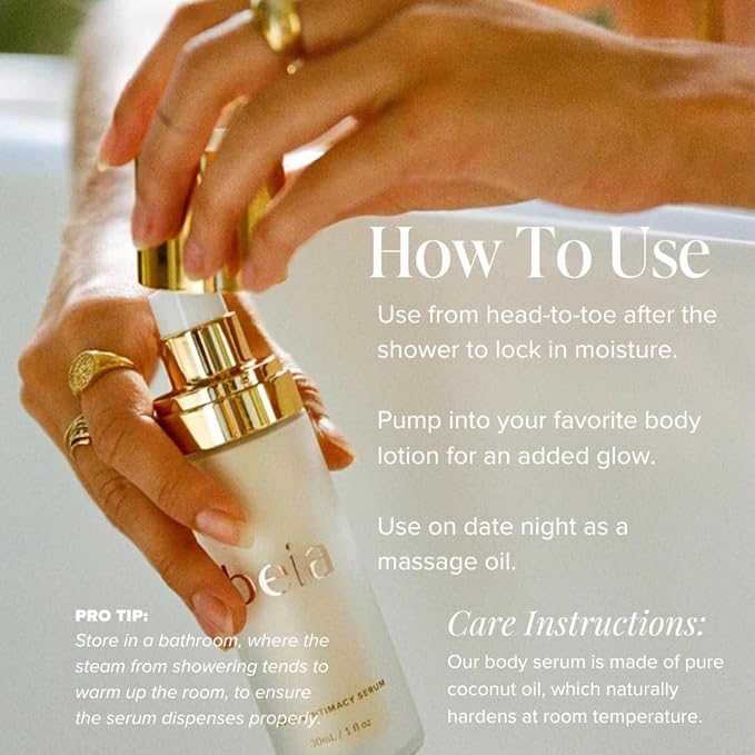 Beia Coconut Oil for Skin - Body Massage Oil for Date Night - Soothing & Safe to Use for Women - Hydrating Moisturizer for Glowy Skin - Dermatologist Tested Fragrance Free-1 Fl Oz