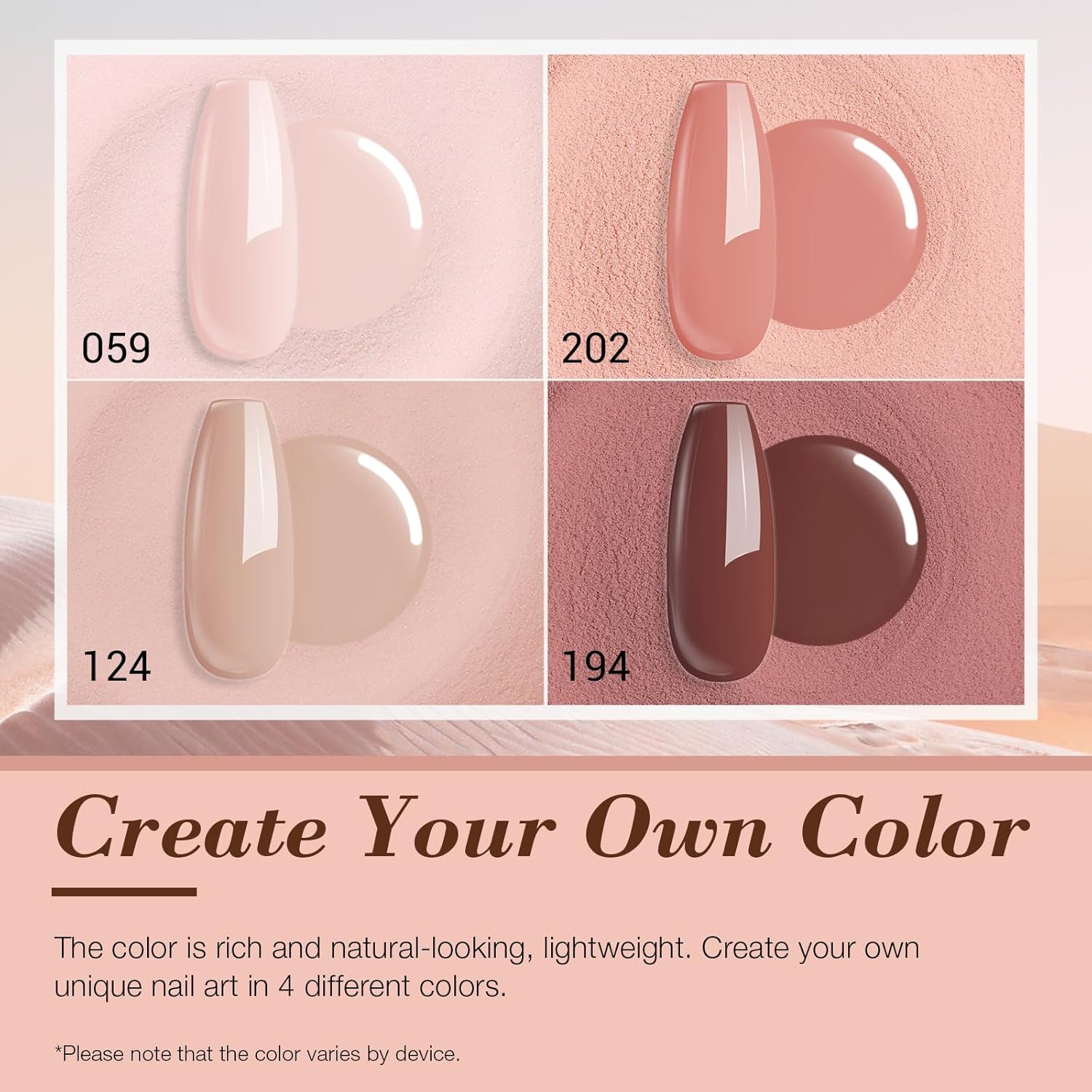 AZUREBEAUTY Dip Powder Nail Kit Starter, All Season Skin Tone Nude Brown 4 Colors Acrylic Dip Powder Liquid Set with Base/Top Coat Activator for French Nail Art Manicure DIY Salon Gifts