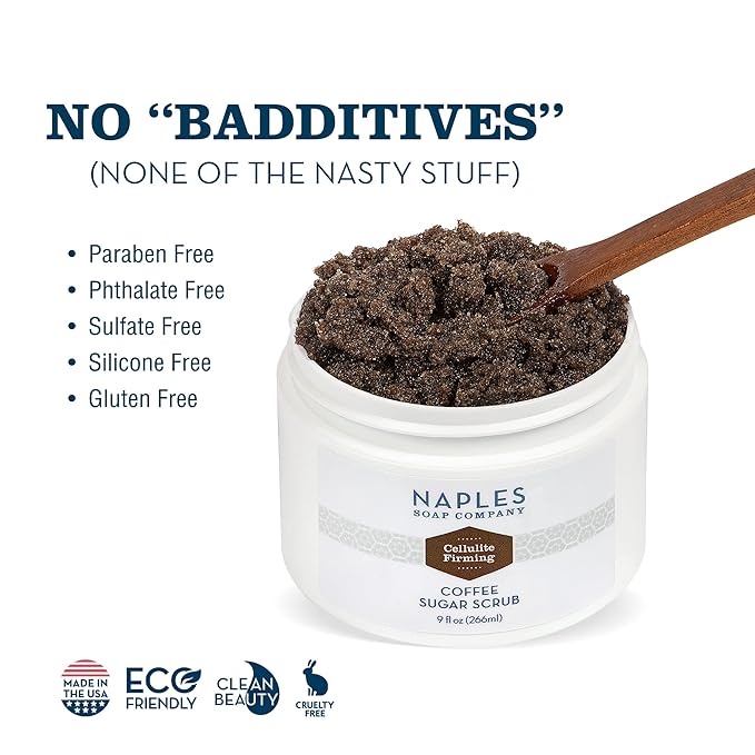 Naples Soap Company Cellulite Firming Coffee Sugar Scrub – Natural Exfoliating and Hydrating Body Scrub for Soft, Radiant Skin – Gluten Free, No Harmful Ingredients, 9 oz