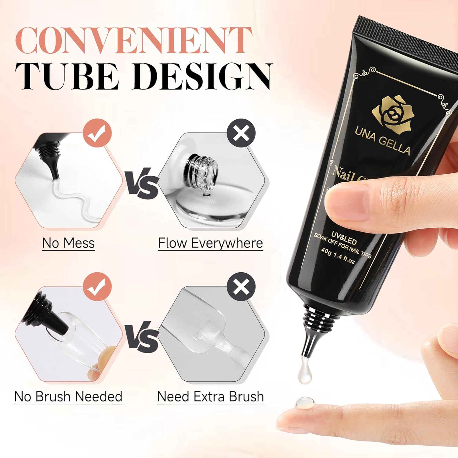 UNA GELLA Gel Nail Glue 80g Super Strong U V Solid Soft Gel Lamp Curing Needed Nail Glue 40g*2 for Acrylic Nail Tips for Fake Acrylic Press On Nails Extension Soak Off