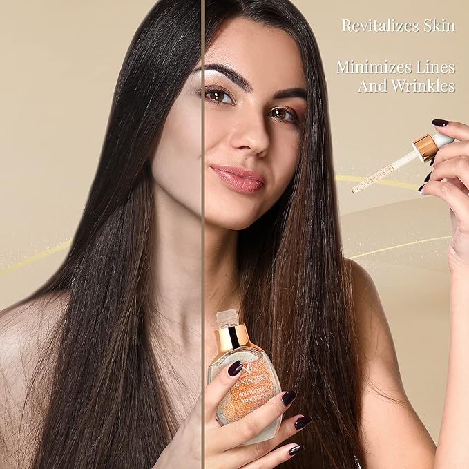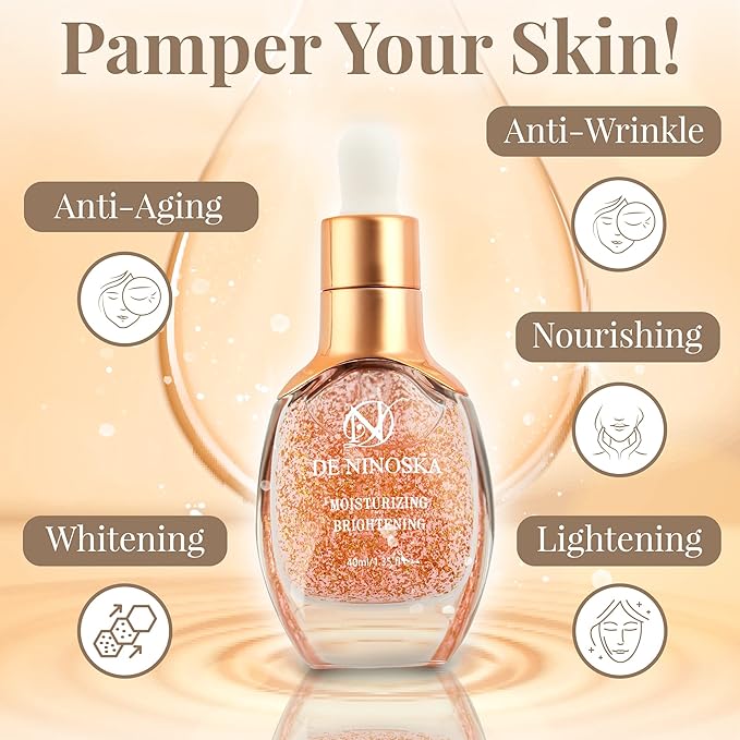 - A Treat For Your Skin.. Arriving in a larger bottle, face serum for glowing skin is a value for money investment for your skin. It's infused with premium ingredients like strawberry and gold flakes, that feels fresh, and soothes and hydrates skin well.