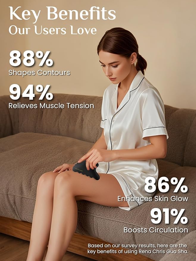 - Dual-Use Design:The Rena Chris Gua Sha tool is primarily designed for body gua sha to promote blood flow and relieve muscular stress; it could also work as a facial Gua Sha tool to sculpt the jawline and reduce puffiness and wrinkles