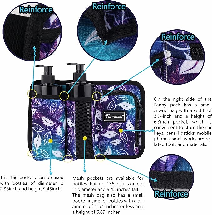 - 3、Massage Fanny pack function design: the design of the bag has a total of 4 pockets, * on the right side of the Fanny pack has a small zip-up bag with a width of 3.94inch and a height of 6.3inch pocket, which is convenient to store the car keys, pens, lipsticks, mobile phones, small work card related tools and materials.