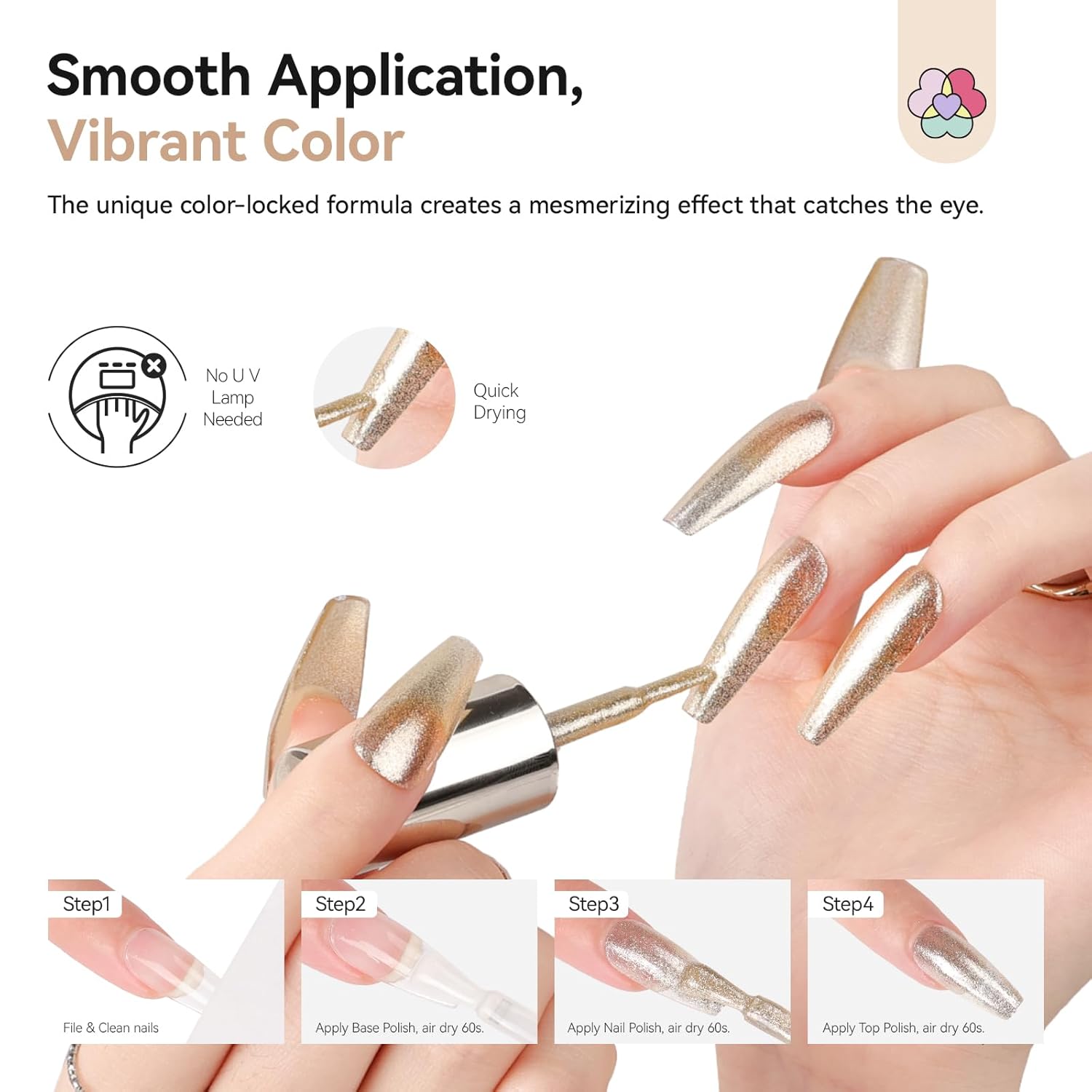 - Ultra Quick-Dry Formula: Achieve salon-perfect nails in just 1-2 minutes per thin coat with our advanced air-dry formula. Requires no U V/LED lamps or complex tools - reduce drying time while maintaining flawless results. Effortlessly refresh your manicure anywhere, anytime