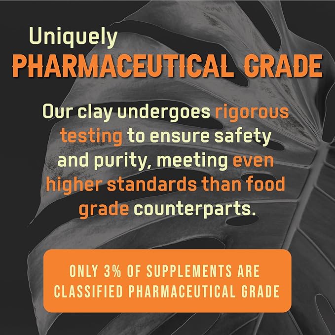 - Unmatched Purity - Unlike most organic bentonite clay, our clay is pharmaceutical grade – even purer than food grade bentonite clay counterparts. Sourced directly within the United States, our powder goes through rigorous quality control and purity testing to ensure it's the safest option for internal use.