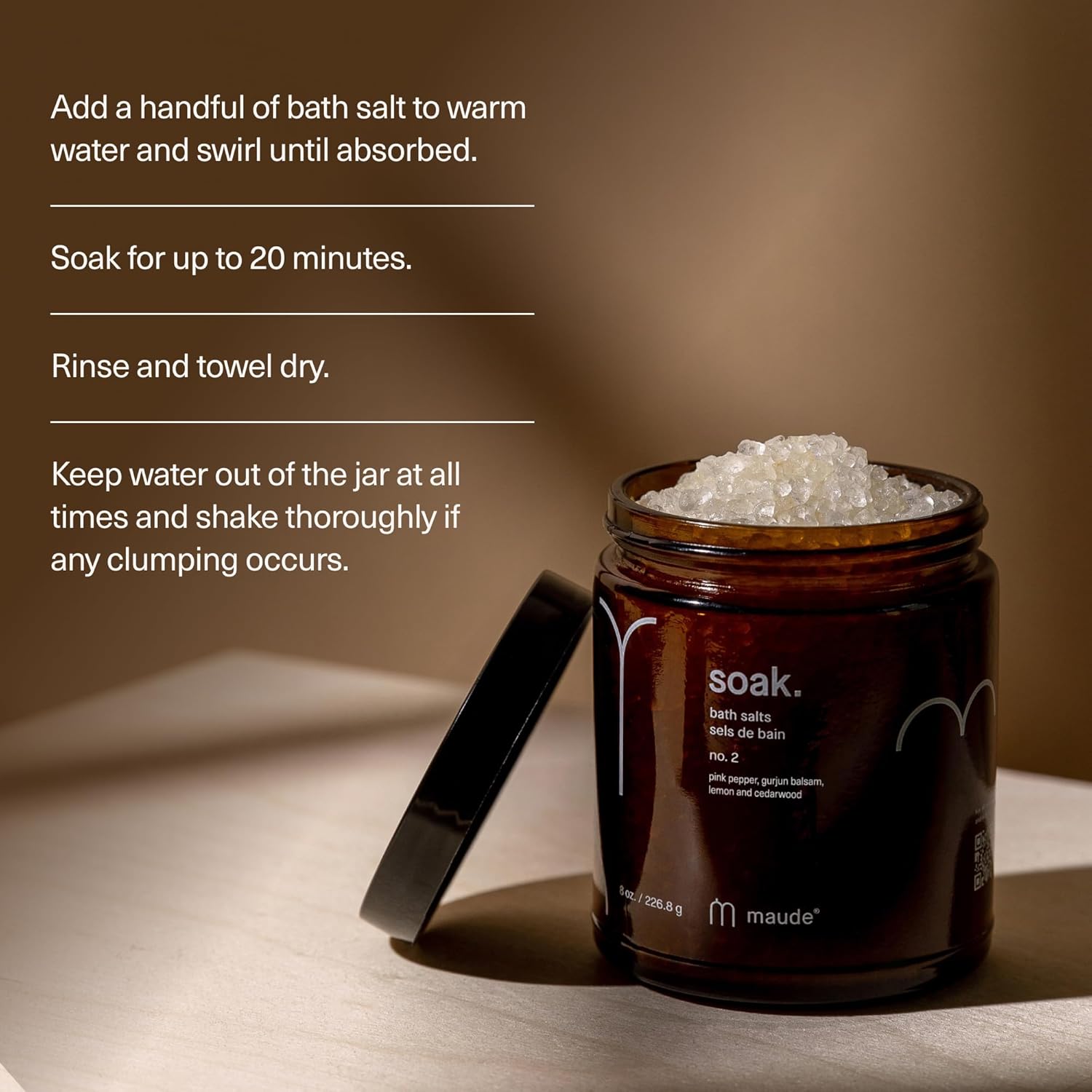 Maude Soak No. 2 - Nourishing Mineral Bath Salts - Hand-Harvested Dead Sea Salt with Magnesium & Potassium Chloride - Soften & Rejuvenate Skin - Notes of Pink Pepper & Lemon (8 oz)
