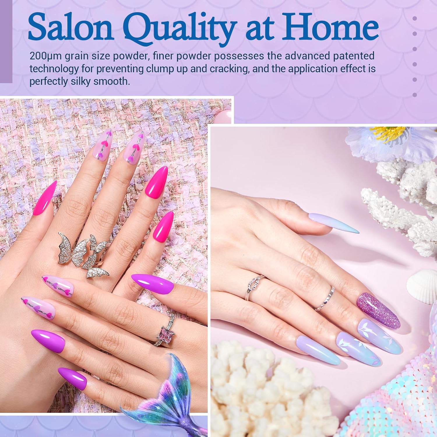 - 🌊【Superior Quality & Healthy Formula】Fortified with calcium and tough against daily wear and tear compared to traditional nail lacquer, gel polish, and traditional acrylic systems. AZUREBEAUTY dip nail kit is of longevity, anti-chip. Unrivaled shiny and vivid, non-yellowing, and superb adhesion. DO NOT contain any preservatives and harmful substances, safe and low-odor with NO damage to your nail bed.