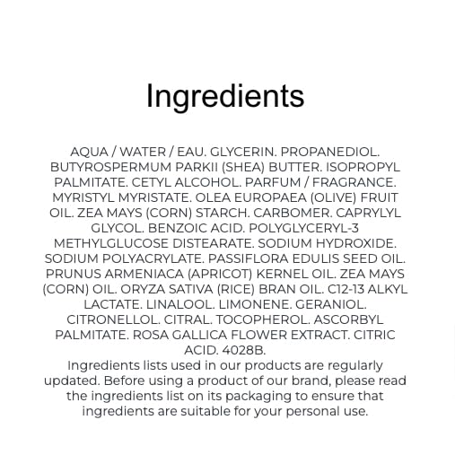 - BODY MOISTURIZING CREAM: For a longer-lasting fragrance apply after using the shower gel before our spray lotion