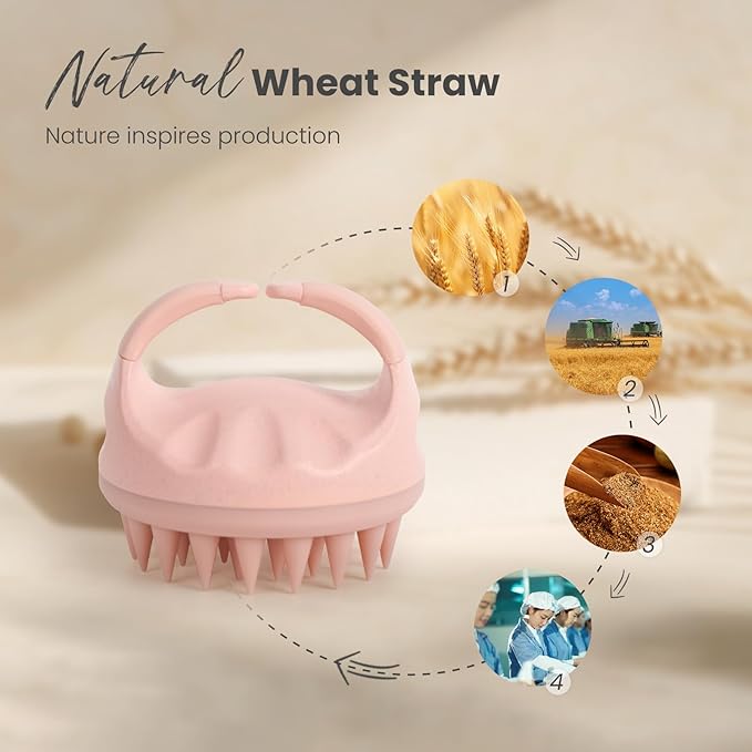- AIMIKE Shampoo Brush: Our scalp massager bristles are made of soft silicone to protect your scalp. The rest is crafted from wheat straw, a by-product of wheat production, which is a zero-waste material, no harm to human body