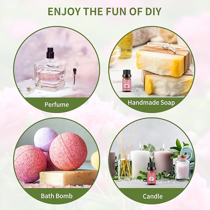 - Widely Used: Suitable for diffuser, cleaning, massage, perfume, home, bedroom, living room, bathroom, office, aromatherapy, outdoor, soap or candle making, yoga studio, car and spa, etc.